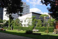 ビクターのみたいな犬の彫刻もある(小屋付き)。土日も庭は人が少ないので、ベンチや芝生でのんびりできる。