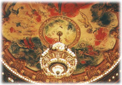 オペラ座の天井画を見るために入場した。絢爛豪華な上流階級の世界に、なぜシャガールなんやろう、と思いつつ、見上げていたら、隣でゲイのカップルが肩組んで、ひそひそとしゃべってる。聞き耳を立てたら絵の解説をしてて、天井画に描かれている12の作曲家たちを全部挙げていた。 |