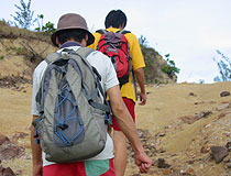 赤土の山を歩き、丘を下ると、もうそこはジャングルです。 このあたりは激戦区だったところなので、戦争の名残が今でも見つかります。 山道を歩いているときには、今までに見つかったという砲弾の破片や銃弾などを見せてもらいました。
