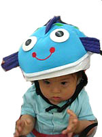 (写真右は、自転車子供用ヘルメット。他にカエルなど。思わず買おうかと思った(笑)