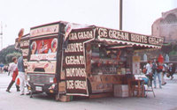 ■パニーニはおいしいよ コロッセオを一周して、正面に戻ったところで屋台のパニーニに吸い寄せられて誘惑に負けた。一つ200円くらいのパニーニを、一つずつ買ってコロッセオを眺めながら道ばたで食べた。イタリアに来てから大したもんを食べさせてなくて二人には気の毒に思ったが、おいしかった。そして友人二人にも受けが良くて安心した。