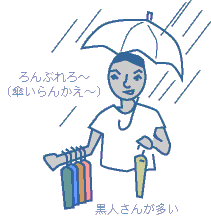小一時間後、街をぶらついていると、小雨もやんでしまった。見ると、さっきまでいた傘売りの姿も寂しげで、そしてあの人たちは晴れているときは何をしているんだろうかと心配した。