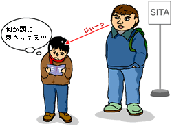 ■聞いて聞いて光線 南イタリアの人たちは、とっても人がいい。 こちらが聞かなくても、視線で訴えてきます。場合によっては不必要なときもありますが、そこは人情、尋ねてあげるととても喜びます。 Ex.1)バス停で SITA(中・長距離バス)のチケット売場が見つからなくて困っていたとき、視線を感じて目をあげると男の人が光線を発していた。 質問をすると、とってもうれしそうに答えてくれた。