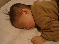 矯正を試みましたが、どうしても彼はその方が落ち着くらしいので、結局そのまま傾いたハイハイが続いています。