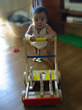 かなり一人で遊べるようになってきました。以前は夕食の準備をしている間中泣いていたのに、今は勝手に台所で遊んでいます。ただ、ゴミ箱をひっくり返すので置き場所に困っています。