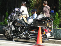 ここでラッキーなことに、有名なハーレーのおじさまに会えました。 友人の話によると、もうかなりの常連らしく、ハーレーでやってきてがんがん音楽を鳴らしながらお茶をするのです。以前はカフェの方に来てくれていたようですが、今ではカフェの方が彼にテーブルと椅子を差し出し、彼はハーレーの横で(つまり道ばたで)お茶をしていました。 しかし、なんて格好いいんでしょう。あんな年の取り方をしたいものです。