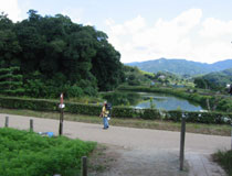 猿石の前は天皇稜。