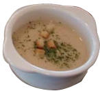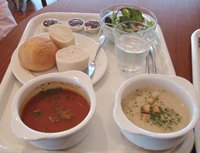 | モネおじさんは、かぶのスープ(→)が好きだったそうです。それでガーデン内のレストランではそれを再現したメニューがあります。パンとサラダがついたセットもあります。というか、他にメニューはあんまりありませんでした。今は充実してるかも。 |