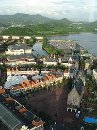 山に囲まれ、海に面した位置にあるハウステンボスは、USJとかと違って、高いところから見ても、一面ハウステンボスです。夢がそんなに壊れないのがいいところです。
