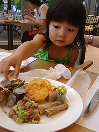 子連れなので、ビュッフェですが、それで大満足。ちゃんとシェフがオーダーに合わせて作ってくれる「エビのラビオリ」ってのもあったし、お子様も食べられるものがたくさんありました。