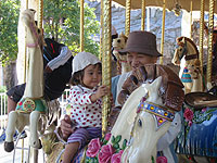 妊婦は乗ってはいけないらしいので、おじいちゃんと乗ってもらいました。おうまさんに乗るのは初めてでしたが、なかなか楽しそうでした。