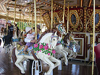まずは高さ45メートルの回転展望台に乗りました。が、下で見ていたときより、すぐ上がって、すぐ下りたので、スペイン村の全貌はよくわかりませんでした。娘は怖がらず、外を覗きたがっていました。