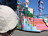 メインイベントのパレードです。私たちは始まる前から、メイン広場に陣取り、スタンバイしていました。娘は、音楽がなり始まった途端、キョロキョロとうれしそうに周りを見て、大きな人形も、外国人のハイテンションなお兄さんも、怖がらずに楽しんでくれました。