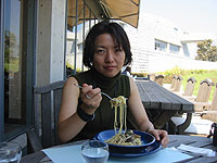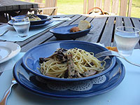 メニューは、サラダにキノコのパスタ、デザートとコーヒーという普通の流れでした。私はサラダに淡路玉ねぎてんこ盛り、とか期待したんですが、普通のイタリアンでした。