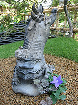 鬼瓦が表情豊かで、意外といろんな庭の風景にマッチしていました。