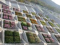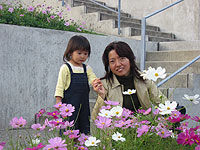 季節によって花は違うようですが、秋なのでコスモスが満開でした。車椅子やベビーカーにも優しい夢舞台で、唯一、階段だらけの場所です。一番上まではエレベーターで行くことができますが、花壇を近くで見ようと思うと、それぞれの段を下りないといけません。