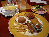 翌日の朝食も、種類こそ減っているものの、シリアルやパンケーキ、お粥に普通の和食と、あらゆるバージョンが揃っていて、ちゃんとこのときもデザートがありました。
