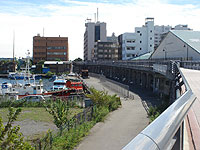 「山下臨港線プロムナード」という遊歩道を歩いていくと、みなとを眺めながら公園に到着します。