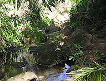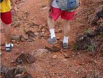 赤土の山を歩き、丘を下ると、もうそこはジャングルです。 このあたりは激戦区だったところなので、戦争の名残が今でも見つかります。 山道を歩いているときには、今までに見つかったという砲弾の破片や銃弾などを見せてもらいました。