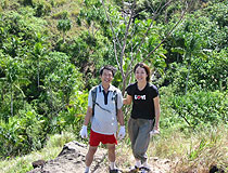滝壺で遊んだあと、川の中を歩いて返ります。ぬかるんだり急な坂だったりして、歩いているところを撮影できなかったのですが、なかなか面白い道でした。