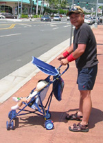 「地球の歩き方」を読んでいると、この本を持っていくと、ホノルルの「地球の歩き方デスク」でB型ベビーカーを無料で借りられるというので、それは便利と、それに期待することにし、あとは各ショッピングセンターでベビーカーを借りればいらないかもしれない、と結論して持っていきませんでした。 が、現地に着くと、「地球の歩き方デスク」では予約が必要だったようで、着いた日に借りることはできませんでした。旅程の後半の3日分だけ借りられるということでした。