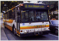 ハワイの公営バスは「the BUS(ザ・バス)」という、そのままやん、な名前です。2004年現在、一回2ドル(大人)でどこまででも乗れます。1度なら乗り換えができます。