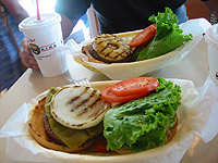 クア・アイナ 日本にも支店があるハワイアンバーガーのお店です。 麻呂はパイナップルバーガー、私はオルテガ(辛くない唐辛子)バーガーを食べました。 ハンバーガーが本当のハンバーグサイズなんですが、私たちは何度試しても、一つにまとめてかぶりつけませんでした。でも他のアメリカ人の方々を見ると、ちゃんと一つにして食べていました。ぎゅーっとつぶして食べているようでした。