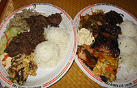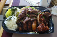 お昼はもっぱら、簡単なものばかりでした。 よく食べたのがプレートランチ。特に韓国系焼き肉やテリヤキのお肉のメニューを食べました。ハワイのものとしては「モチコチキン」という甘めの唐揚げチキンがおいしかったです。