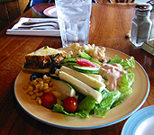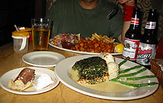 麻呂の方には山盛りポテトフライ、私の方には山のようなマッシュドポテト。何とか食べましたが、ここもお腹が苦しかった。値段は一皿で15ドルぐらいしますが、味は良かったです。