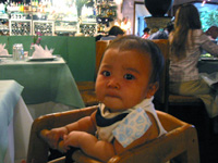 ガイドブックで見て、初日の夜に行きました。日本でもそうですが、赤ん坊連れなので、だいたい早めに店に行きます。この日も6時前ぐらいに行ったのですが、もう入り口付近で待っている人がいました。ガイドブックに載っている「チリ・オムレツ」がおいしそうだったのですが、メニューになくて別のものを頼みました。