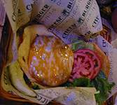 麻呂がお店のオススメ「チーズバーガー」で、私が「グリルド・チーズサンド」を注文しました。 どちらもおいしかったのですが、何しろ付け合わせのポテトが多い。しかも、ここのはこんがり火が通りすぎて黒っぽい。ちょっと油が多そうでした。そのうえ、麻呂が席に案内されるときに人の注文を見て「オニオンリング」がおいしいそう、と言って注文しました。出てきたそれは、玉ねぎ丸々一個分あるものでした。途中でお腹がはちきれそうになりながら、食べました。 店員さんも赤ん坊に手を振ってくれるなど、愛想が良くて、お店はとても満足しました。