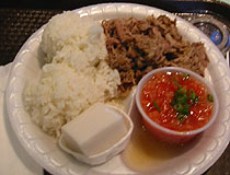 夕食は「アラモアナ・ポイ・ボウル」で、ハワイアンフードに挑戦しました。 ペーストが苦手なのでポイ(タロイモペースト)はライスに変更しましたが、ロミロミ(サーモン+トマト)やカルアピッグ(豚肉)、ココナッツプリンなどが食べられて満足しました。 |