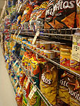 SAFEWAYには乳児用カートもあって、お子様が上に乗るという形が面白くて、アキラを乗せてみました。ヒトミぐらいの大きな子用には、日本でもよくある乗り物型のカートが、荷物用カートに連結するという電車みたいな形のがありました。通路が広いからいいものの、日本じゃちょっと考えられないなぁと思いました。