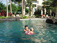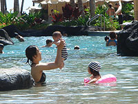 コオリナには、ラグーンが4つあります。人工的に岩礁を作ってあるので、波は静かで砂も危険なものがなく、安心です。