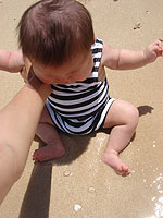 去年はこの静かな海でも怖がっていたヒトミが、今年は波打ち際さえ過ぎると楽しめました。波はやはり、足を取られるので怖い様子です。また、砂が足について「汚れた〜」と神経質に騒ぐので、困りましたが。