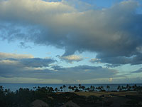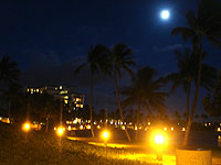 夕涼みと言っても、ラグーンが4つつながっているだけで、後は何もない土地です。ワイキキのようにショッピングセンターもなく、クラブやバーが並んでいるのでもなく、ジョギングしている人がいて、暗い海で泳いでいる若い人が何人か見えるだけです。