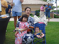 ハワイで一度は浴衣を着よう、と計画していたので、せっかくだからこの日にしました。(前日の夜も、予行演習で夕涼みしましたが)