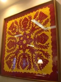 お土産用キルトには、安いフィリピン製で、縫い目の粗いものが多いのですが、私はそれを見慣れていたため、ハワイアンキルトって大したもんじゃないと思っていました。