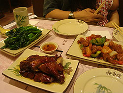 初日の夕食は、チャーハン、牛肉麺、酢豚、ローストダック、野菜炒めでしたが、どれもおいしくいただきました。