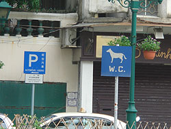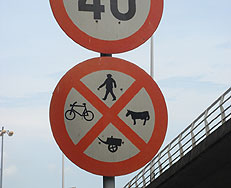 えーっと、ここは、人も自転車も人力車も、牛も通れませんよ〜。