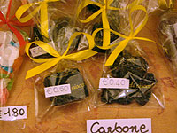 彼女は、よい子には甘いお菓子を、悪い子だった子には「炭」を届けるのです。だから何か届いている、と思っても油断できません。開いてみると、それは「炭」かもしれないのです。子供にも厳しいイタリアです。