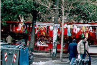 もちろん屋外にもあって、ローマのスペイン広場の階段の中段にもおおきなセットが組んであった。 エピファニアが過ぎると、あっというまに撤去されてしまうところもあって、1月7日には残骸だけが残っていたりする。