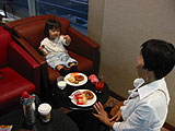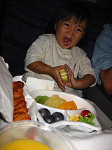 また、今回から「ベビーミール」ではなく「キッズミール」になります。瓶詰め離乳食は卒業し、ハンバーガーやフライドポテト、フルーツなどがセットされていました。実際はほとんど食べなかったけど、来年ぐらいになったら喜んで食べるメニューだと思います。